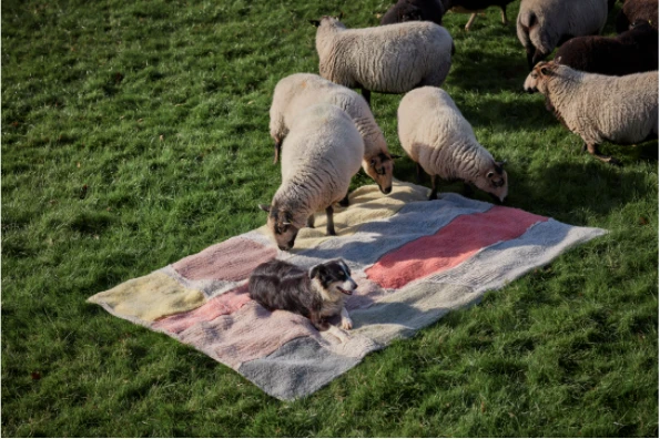 Combining colourful abstract shapes in a short pile, with more muted, natural colours in a medium pile, this large handcrafted rug is part of our collaboration with Lorena Canals – the product of Donna and Lorena’s shared love of all things woolly.