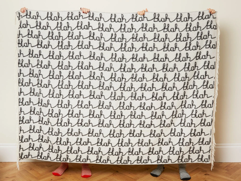This wool blanket featuring Donna Wilson’s signature Blah Blah design is great to throw over a sofa or bed.