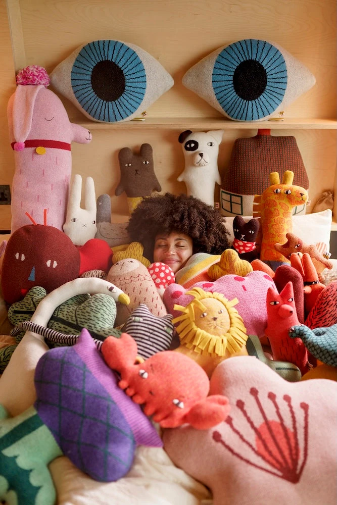 Made from 100% lambswool, our shaped cushions are knitted in Scotland, then stuffed with recycled polyester and hand-finished in our London studio. We try to give each one an affectionate squeeze before sending it off to you.