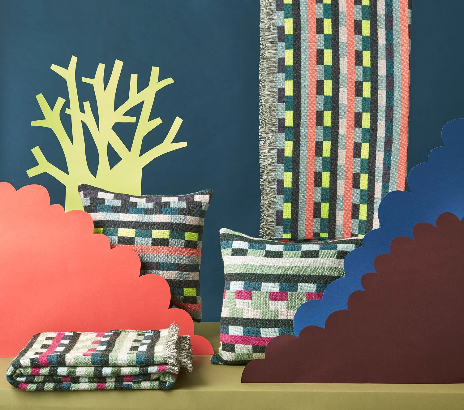 The magnificent menagerie of colliding colours make this Glitch Woven Throw an eye-catching addition to any room. The unique design emerged from a computer glitch creating a striking repeat pattern that served as inspiration for the weave.