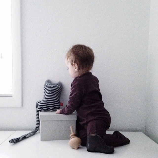 Mono Cat is made from 100% lambswool stuffed with recycled polyester stuffing, and is suitable for ages 3+.