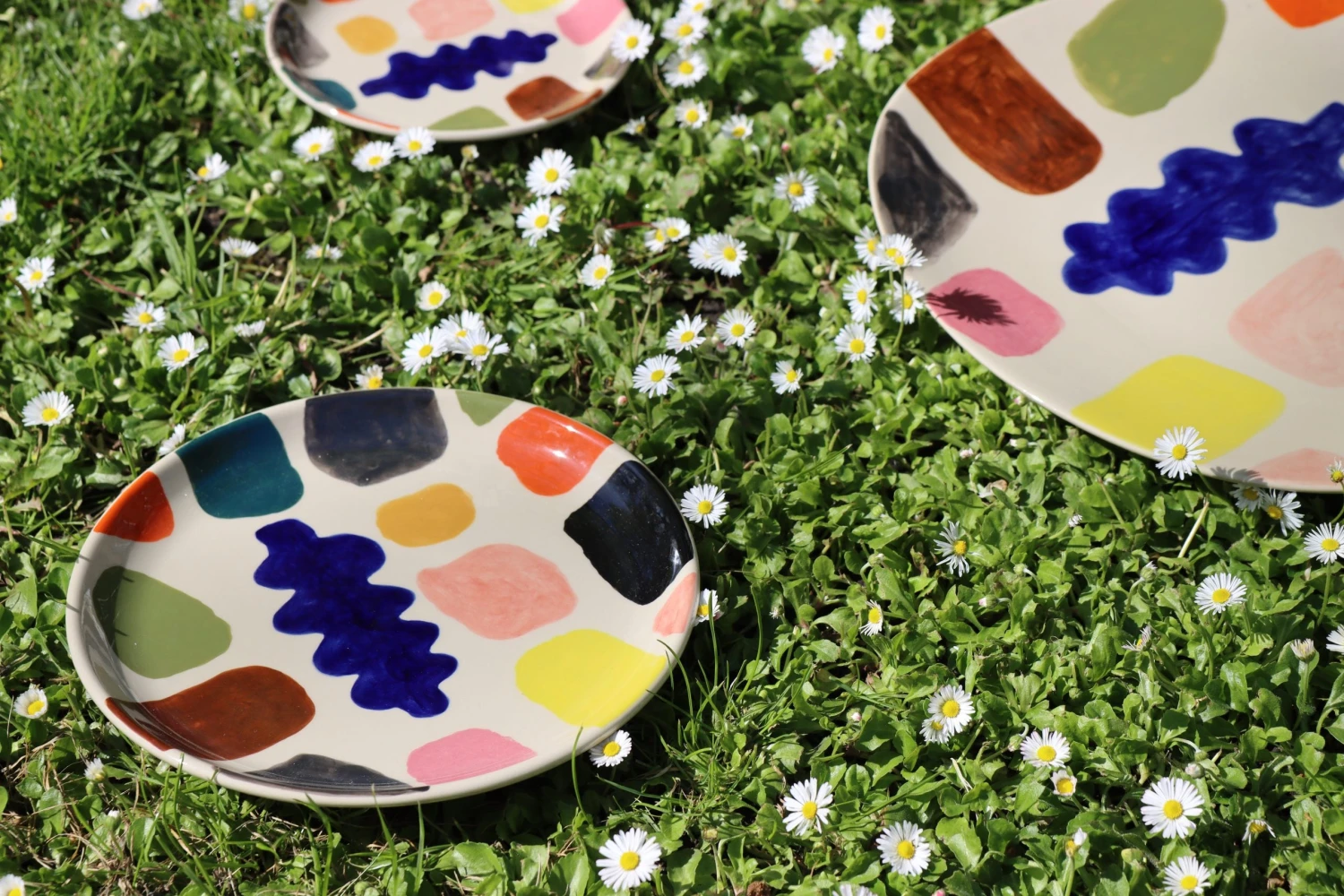 The new Mottle Ceramics range is the latest addition to our Stoneware collection and has a colourful abstract design, inspired by an artist’s painting palette.