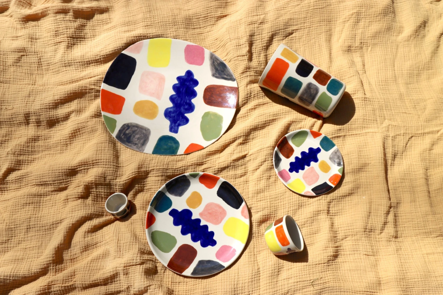 The new Mottle Ceramics range is the latest addition to our Stoneware collection and has a colourful abstract design, inspired by an artist’s painting palette.